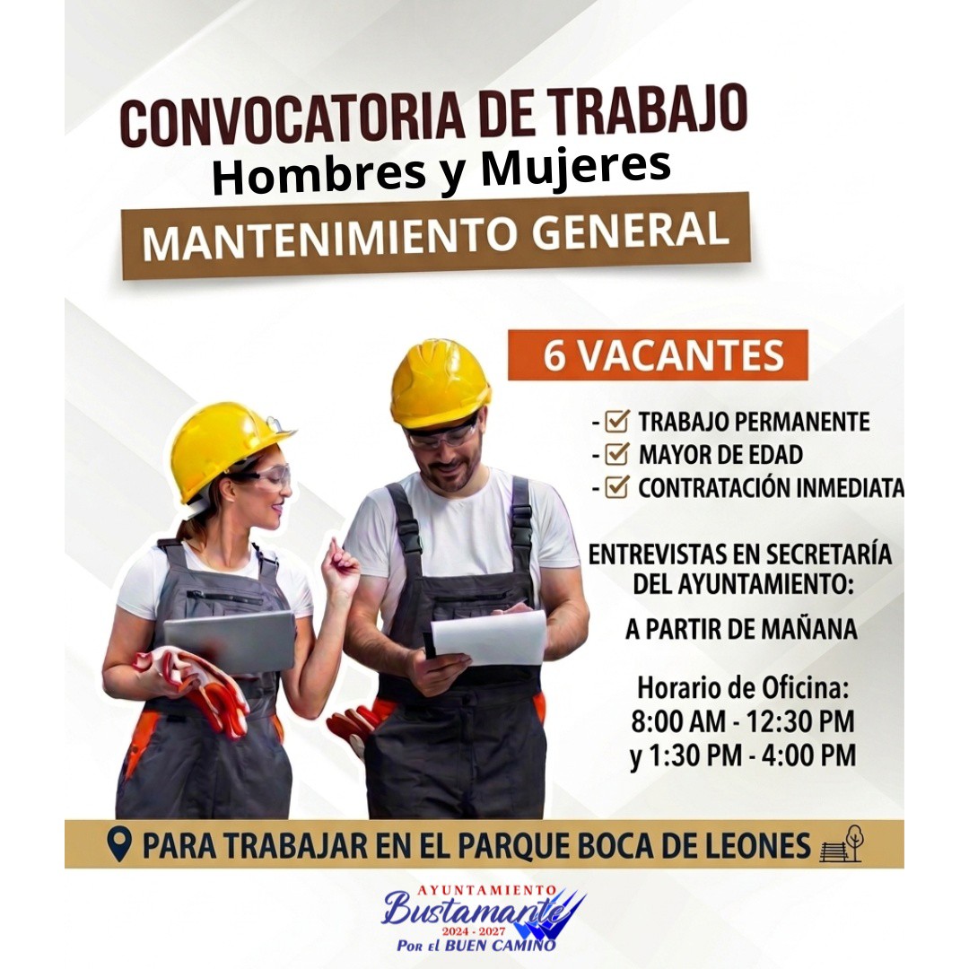 El gobierno municipal de Bustamante lanzó una convocatoria para integrarse al equipo de mantenimiento del Parque Boca de Leones.