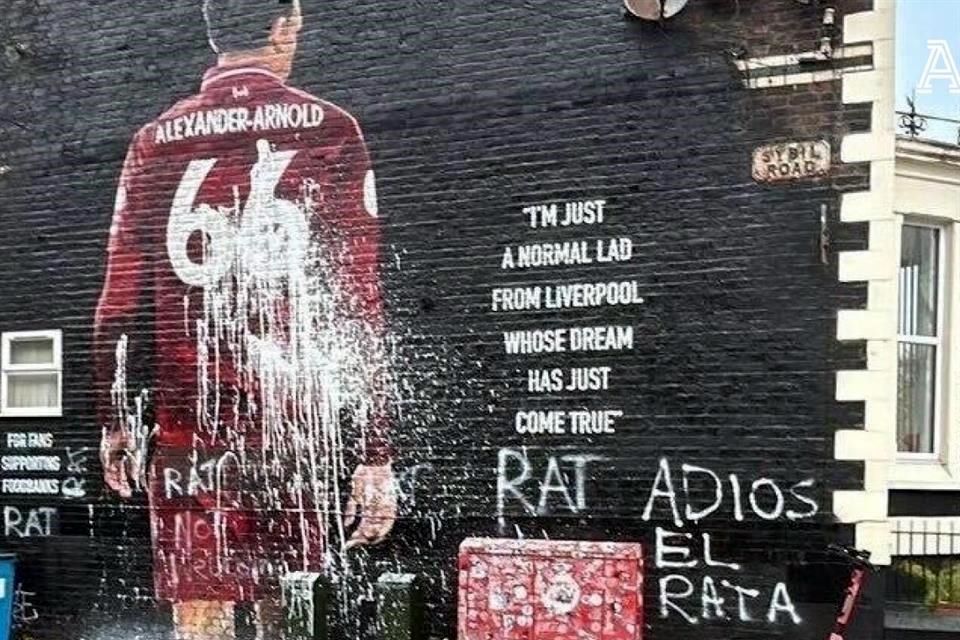 Un mural que exhibe al exjugador del Liverpool, Trent Alexander-Arnold, fue vandalizado este martes apenas unas horas antes de su regreso a Anfield con su nuevo equipo, el Real Madrid.