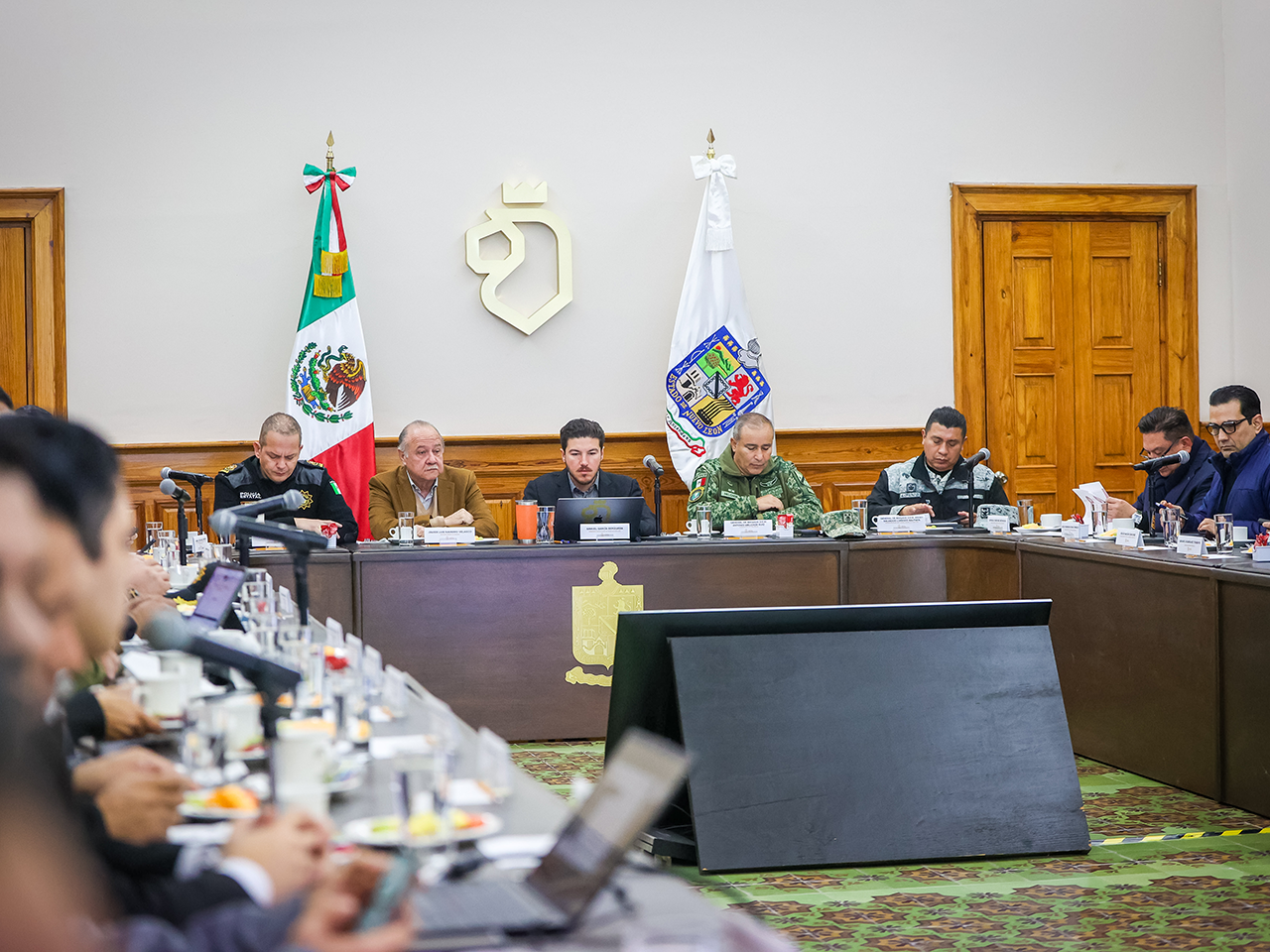 Durante la reunión de la Mesa de Seguridad, encabezada por el gobernador Samuel Alejandro García Sepúlveda, y acompañado del secretario general de Gobierno, Javier Navarro, junto con los integrantes de este cuerpo interinstitucional, Escamilla Vargas subrayó los ejes principales de esta coordinación: salvaguardar el área metropolitana y reducir los homicidios mediante el intercambio de información para generar inteligencia e investigación, lo que permite la detención conjunta de generadores de violencia.