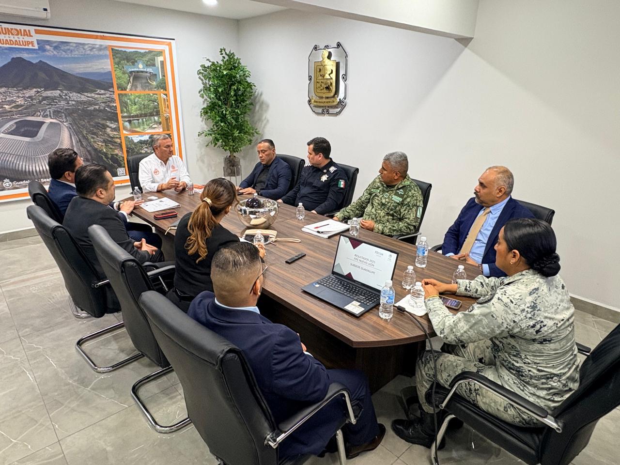 La reunión fue encabezada por el alcalde Héctor García y contó con la participación de Gonzalo Sánchez Betanzos, representante de la Fiscalía General de la República en Nuevo León; Omar Amador Escobar Figueroa, de la Secretaría de Seguridad y Protección Ciudadana; así como mandos del Ejército Nacional y de la Guardia Nacional.