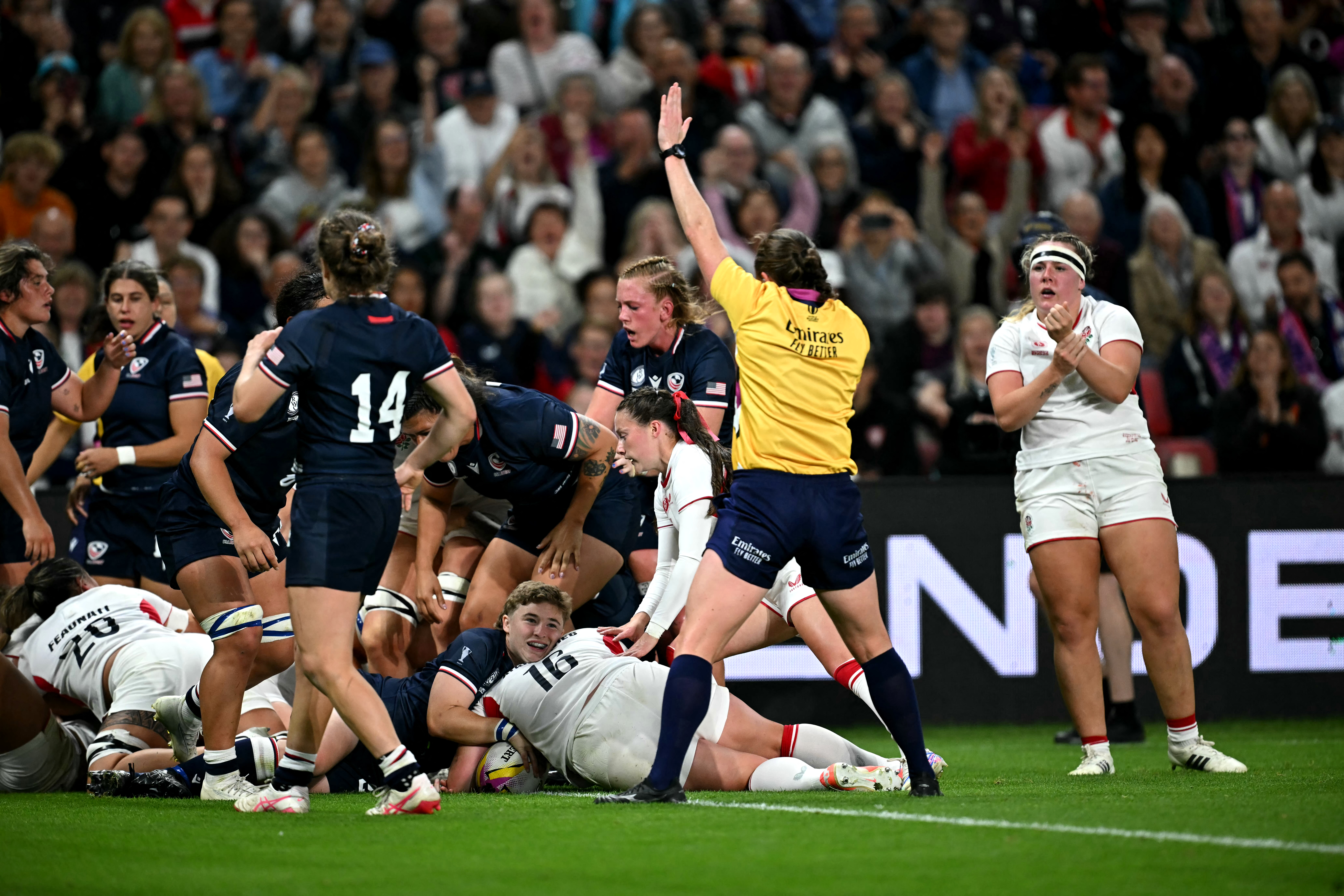 Estados Unidos, décimo equipo del ranking mundial, resistió solo 25 minutos, hasta que Erica Jarrell-Searcy firmó un try que acercó a su equipo a siete puntos (14-7) de las locales.