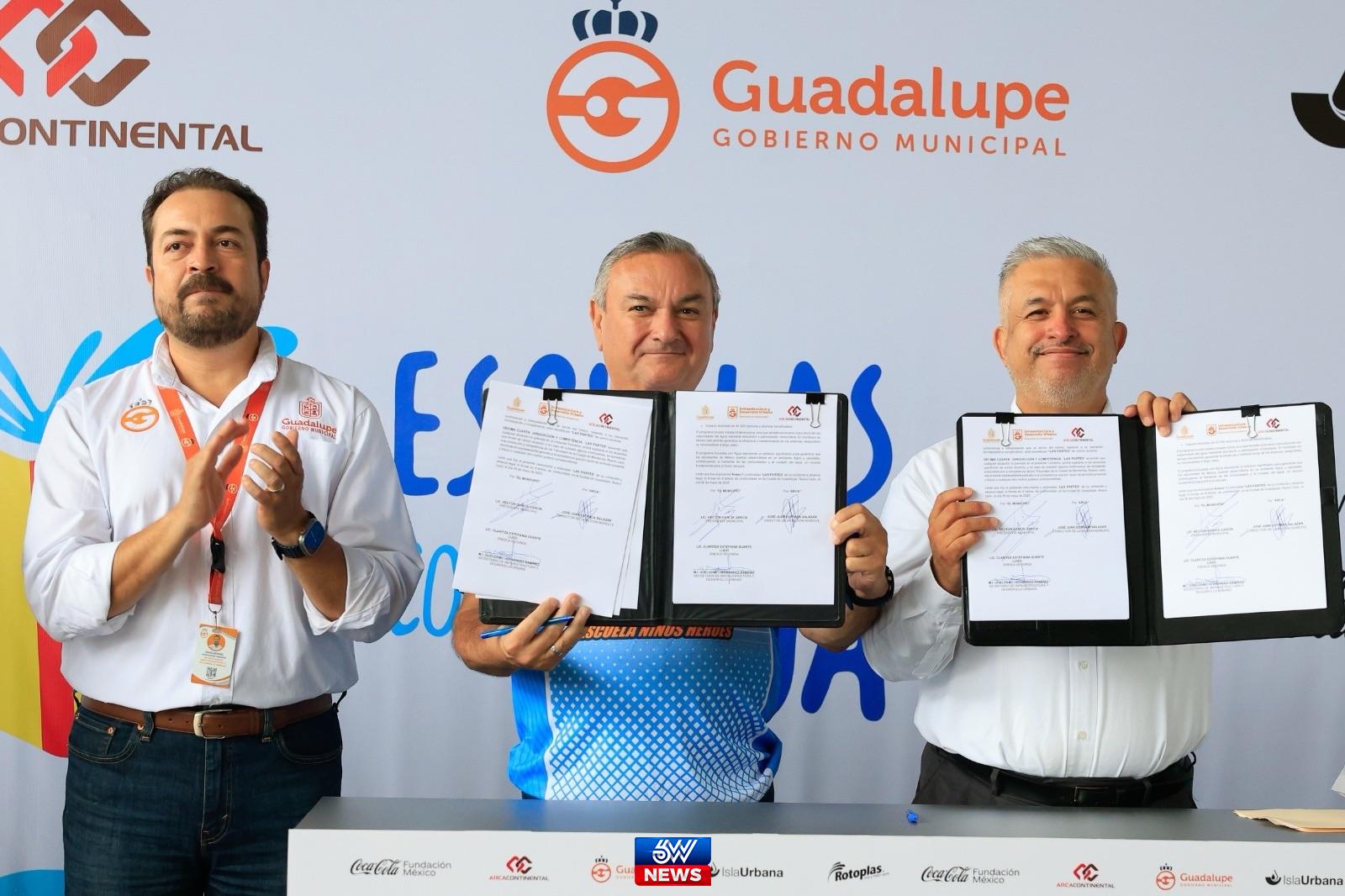 El Gobierno Municipal de Guadalupe, en conjunto con la empresa Arca Continental, dio inicio al programa “Escuelas con Agua”, con el objetivo de aprovechar la captación de agua de lluvia en instituciones educativas.