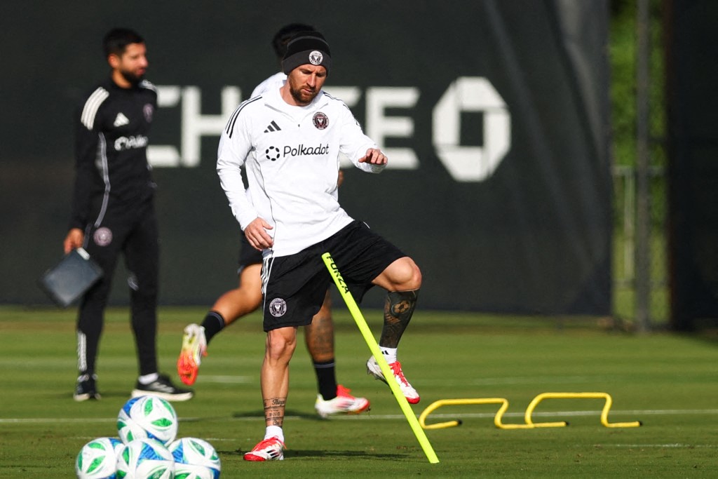 Messi, que disputará su tercera campaña en la liga norteamericana (MLS), se resguardó con un gorro de lana del clima matinal en la práctica, en la que se ejercitó junto a compañeros como Luis Suárez y Jordi Alba.