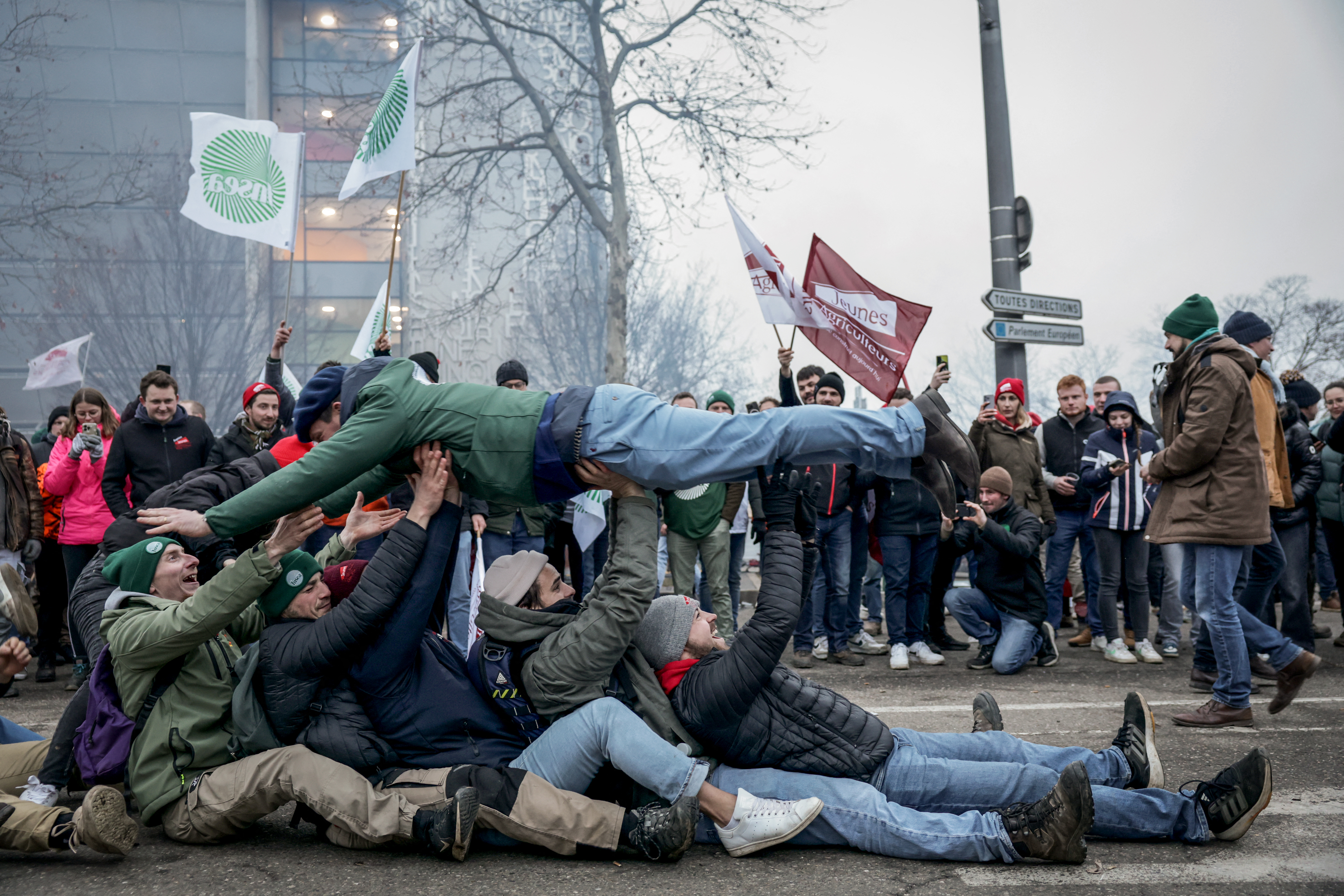 Agricultores franceses, italianos, belgas e incluso polacos se manifestaron a varios cientos de metros de su sede en Estrasburgo, en el noreste de Francia. La protesta congregó más de 5.500 personas, según la policía.