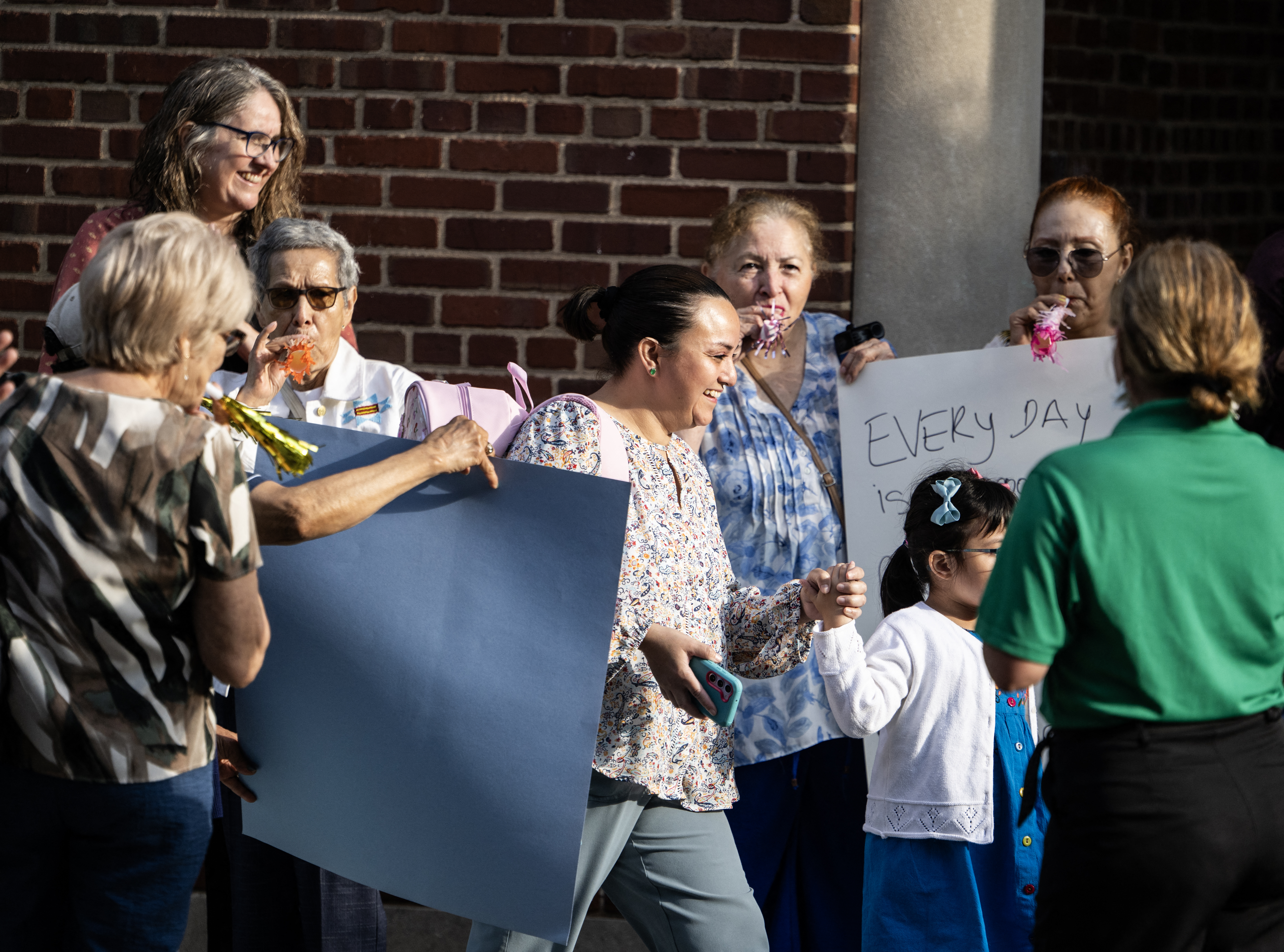 Blanca, una inmigrante de mediana edad procedente de El Salvador, se acercó a la entrada de la escuela con un cartel en el que se leía -en inglés y español- «Cada día es una oportunidad».