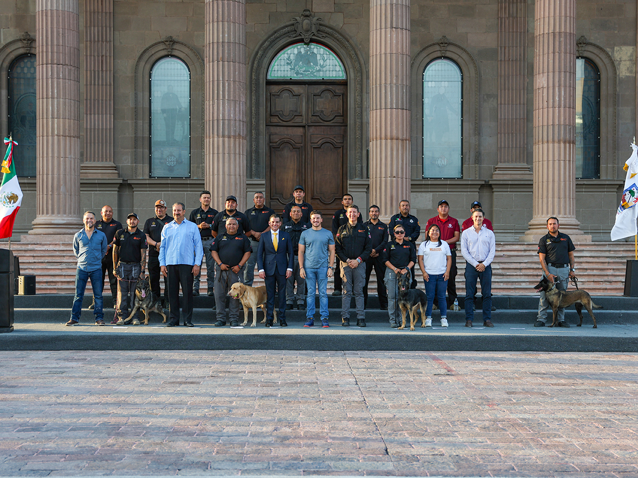 La ceremonia, encabezada por el Gobernador Samuel García Sepúlveda en la Explanada de los Héroes, destacó la labor del equipo que viajó a Kerr, Texas, y que ahora ha sido solicitado nuevamente por autoridades del vecino país para continuar con la operación de búsqueda.