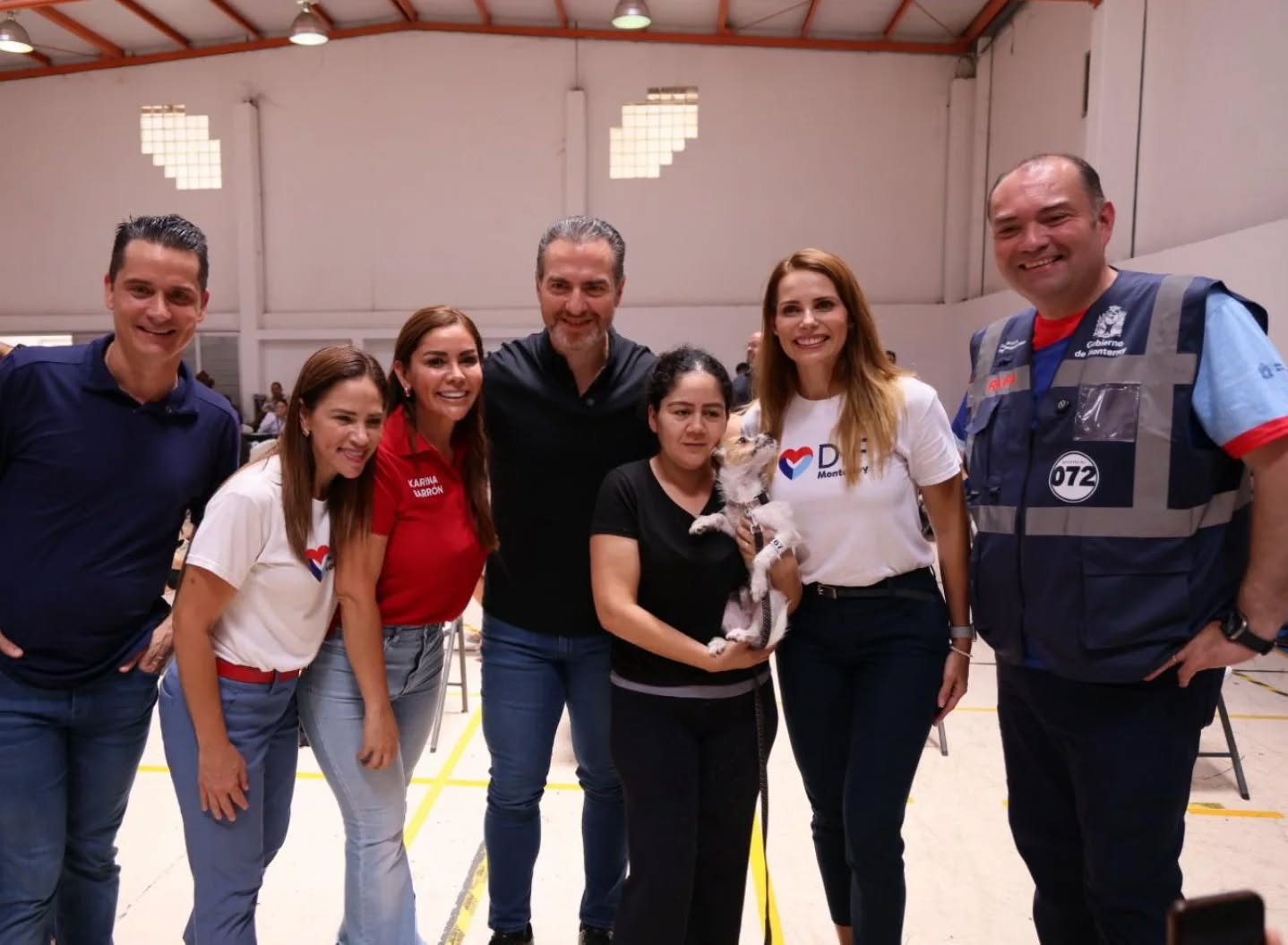 El alcalde Adrián de la Garza Santos, acompañado por su esposa Gaby Oyervides, acudió al lugar para supervisar las acciones y dialogar con vecinos y voluntarios.