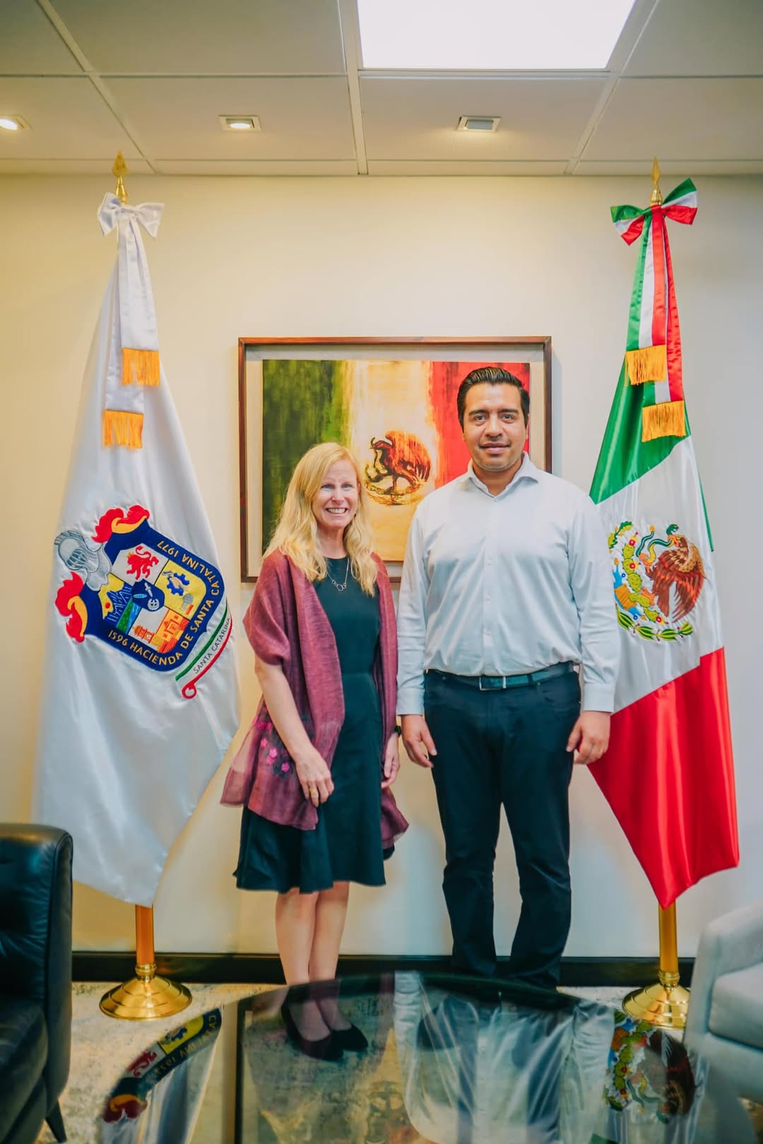 Santa Catarina continúa dando pasos firmes hacia su crecimiento y desarrollo, y hoy se dio un importante paso en ese camino con la visita de Melissa Bishop, Cónsul General de Estados Unidos en Monterrey. El encuentro, encabezado por Jesús Nava, Alcalde de Santa Catarina, tuvo como objetivo fortalecer los lazos de colaboración entre el municipio y el gobierno estadounidense, con la finalidad de generar más oportunidades de desarrollo para los habitantes de la región.