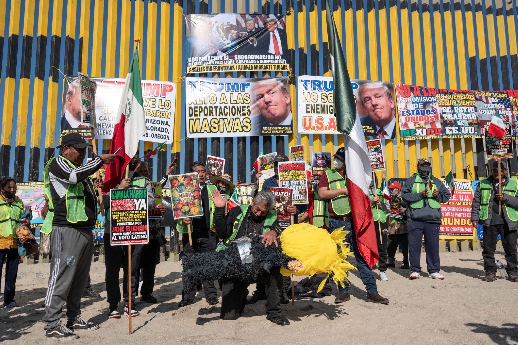 El rechazo al plan de deportaciones de Trump también se dejó sentir en Tijuana (noroeste), ciudad fronteriza con Estados Unidos, donde activistas y migrantes realizaron una manifestación frente al muro que divide a ambas naciones, en la zona costera de dicha ciudad.