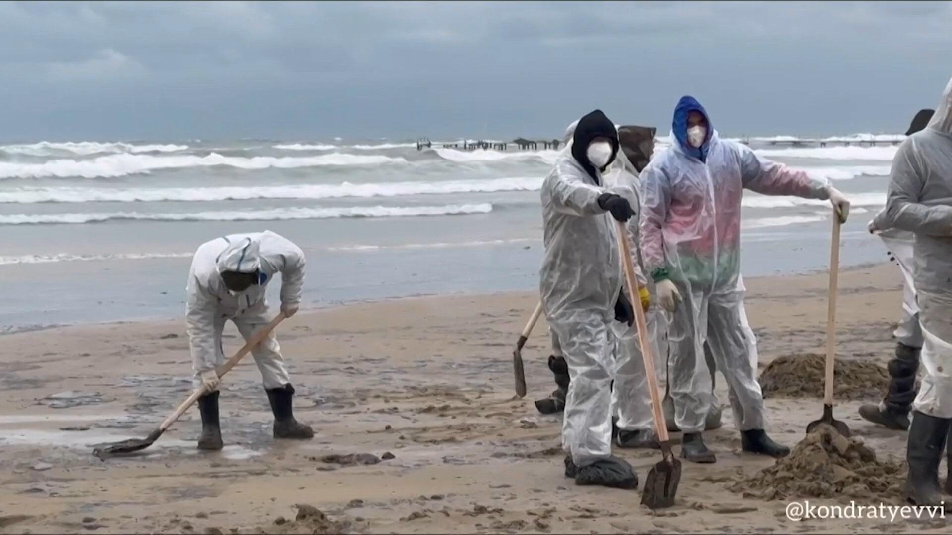 Miles de voluntarios se movilizaron para limpiar las playas del suroeste de Rusia, manchadas de combustible. Sin embargo, expertos aseguran que el material utilizado no es suficiente.