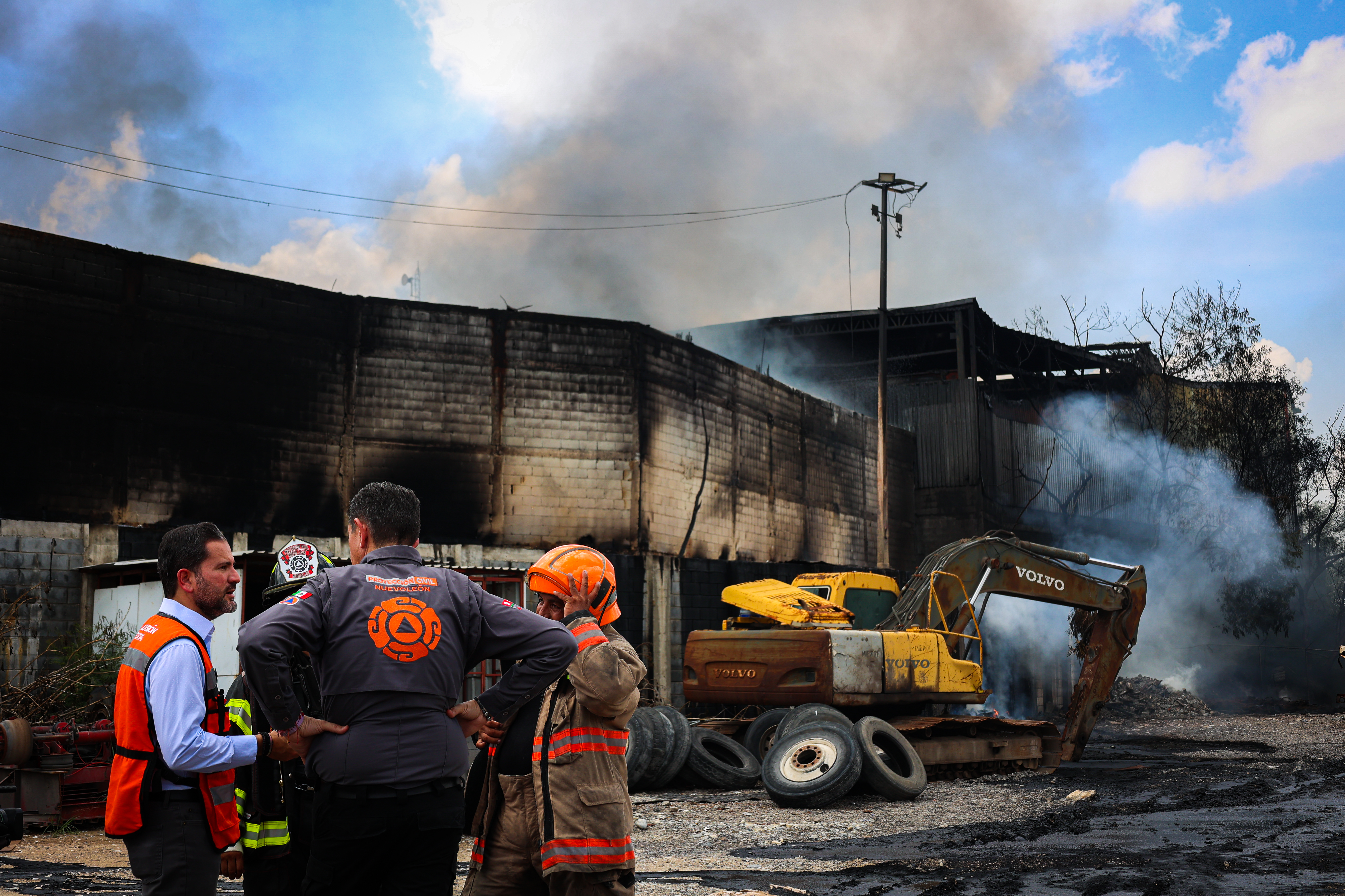 La División Ambiental, junto con Protección Civil del Estado y la Secretaría de Medio Ambiente, acudió al municipio de Escobedo tras un incendio en una empresa presuntamente dedicada al almacenamiento de hidrocarburos.