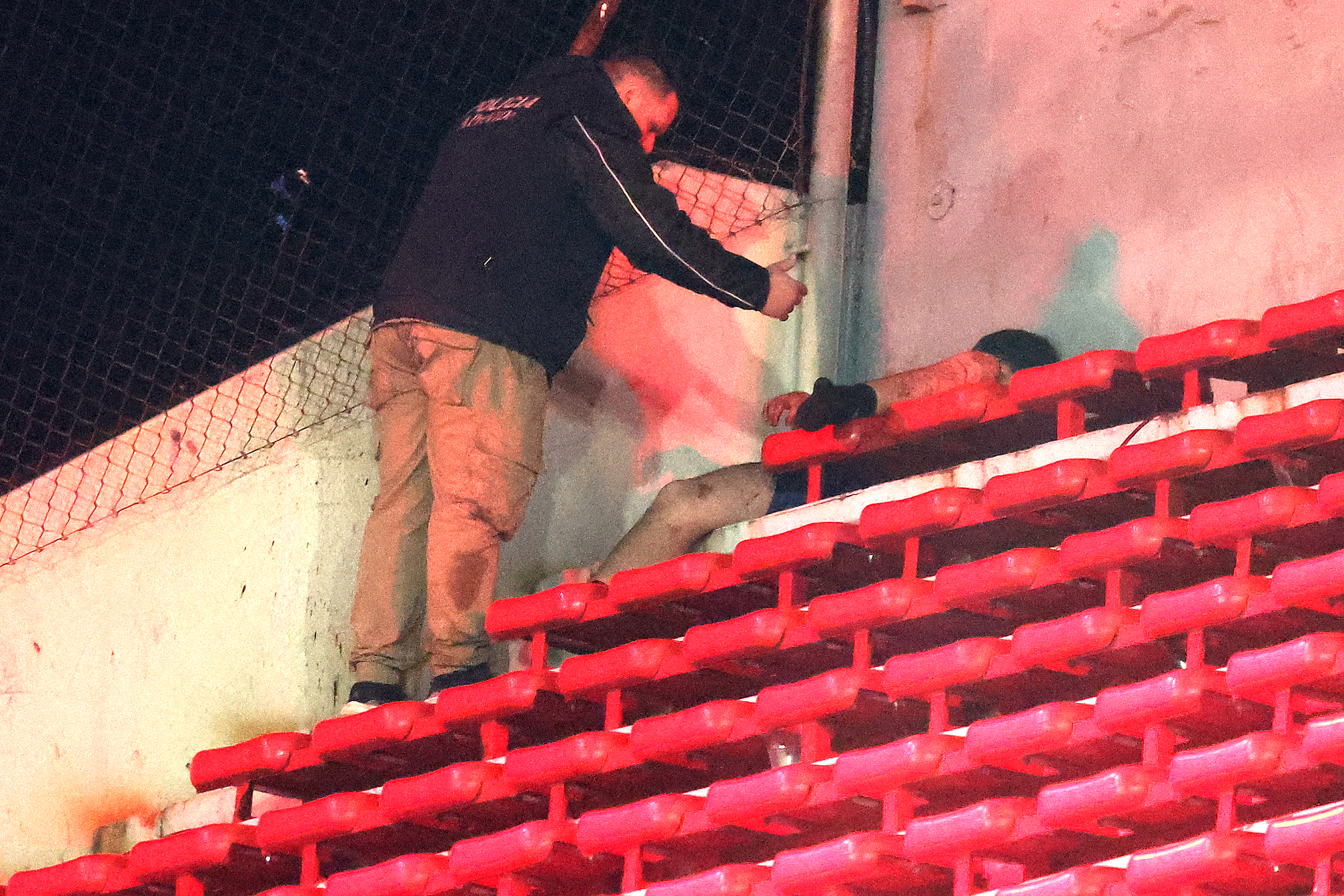 Todos presentan traumatismo de cráneo, uno de ellos herido tras arrojarse al vacío desde la tribuna cuando fue acorralado por hinchas locales. Si bien evolucionó en forma favorable tras ser operado, su estado sigue siendo grave, precisaron autoridades sanitarias.